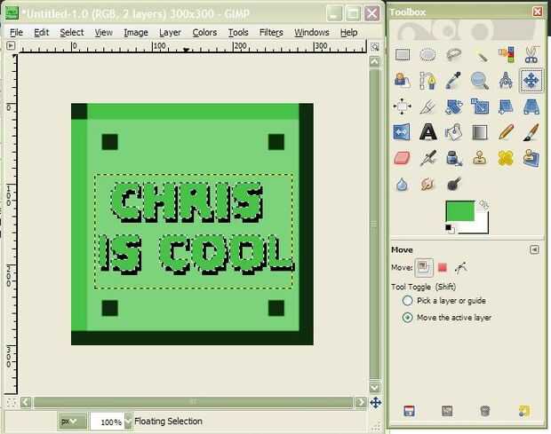 Utilizar las herramientas de cuentagotas para seleccionar el color fuera de texto, el más oscuro de los dos colores. Luego, pegar la capa que te dije para copiar. Mover sobre el texto negro por lo que parece que tiene una sombra. A continuación, rellena cada letra con el color del cuentagotas con el relleno de cubeta.