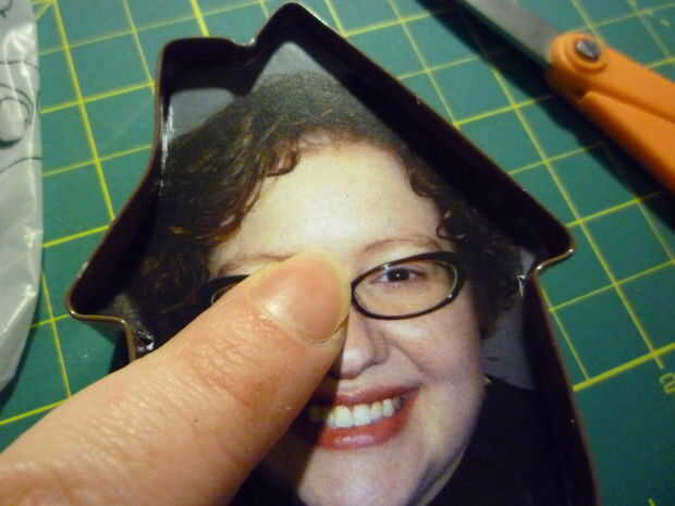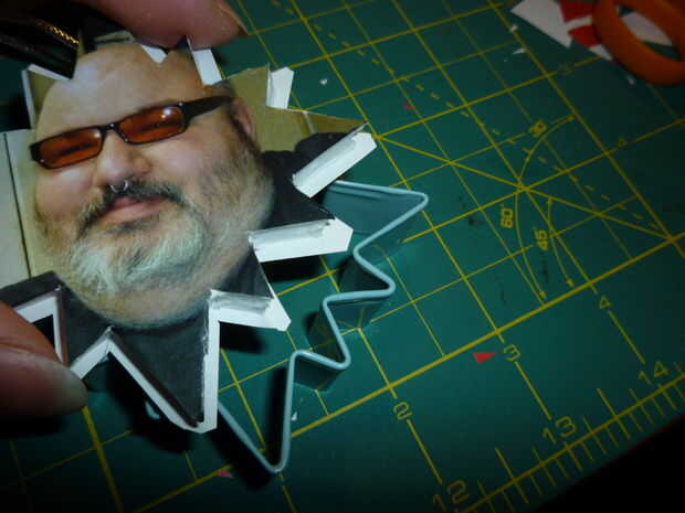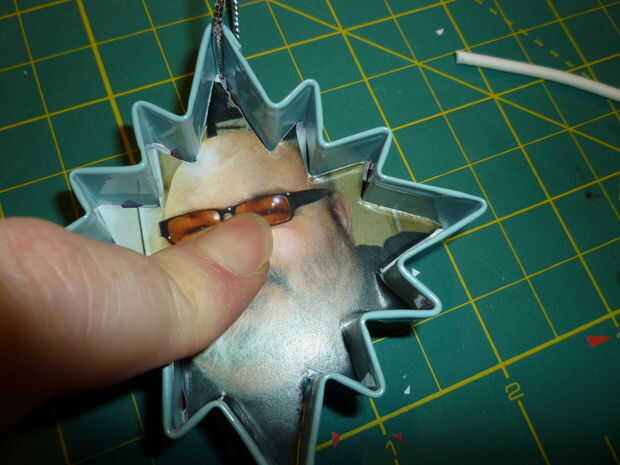 Después tienes tu tablero cubierto y adornado, y el cortador de la galleta tiene un bucle, coloque el cookie cutter su superficie de la mesa y coloque la Junta en la herramienta de corte hacia arriba. Empuje hacia abajo en el cortador de la galleta suavemente, dejando que el respaldo a acurrucarse en los bordes, hasta que la junta esté ajustada en la parte inferior del cortador de la galleta, empuja hacia abajo a la superficie de la mesa.