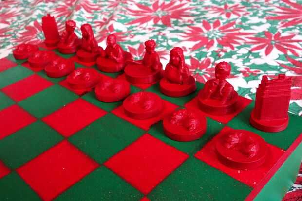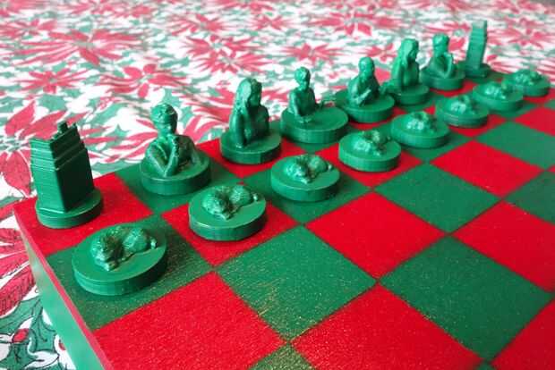 He creado un sistema con todos los miembros de mi familia como las piezas como regalo a mi familia este año de ajedrez. Resultó ser un gran éxito en Navidad así que decidí compartir el proceso y documentar mi trabajo. Cada pieza es un modelo 3D impreso de cada uno de mi familia inmediata, incluyendo a mi perro, y la torre es un modelo de nuestro edificio. El conjunto incluye un tablero de ajedrez y caja de madera para almacenar todas las piezas.