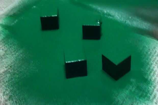 Derecho, la Junta debe sentarse encima de la caja muy bien, pero realmente no se queda. Aquí es donde vienen los cubitos. Cuatro de los cubos pequeños de 3/4" pintar un color de su elección y deje secar.