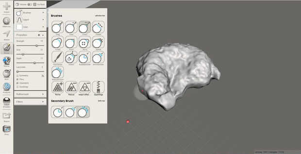 Las herramientas Sculpt pueden utilizarse también para editar algunas partes del modelo: hacer los bordes más definidos, arreglar pelo o sensor fallará, etc.. Para algunos de los otros modelos, tuve que limpiar algunas de las inconsistencias de escáner 3D y editar piezas de mano para ser cuerpos sólidos, planos en lugar de piezas individuales para hacer más fácil para la impresora 3D manejar. La mayoría de las herramientas necesarias para limpiar las piezas se encuentra en la caja de herramientas de escultura.