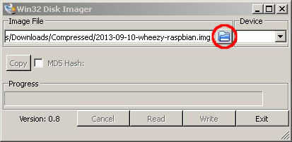 Lo primero que queremos hacer es flash la imagen Raspbian a la tarjeta micro SD. Después de descargarlo, usar el Win32DiskImager mencionado antes a flash tarjeta micro SD. Asegúrese de que selecciona la unidad correcta! Para verificar el éxito Windows + e claves. En la ventana que aparece busque la tarjeta SD. Tome nota del nombre. Continuación, seleccione nombre en el programa. Ahora conecte la tarjeta sd en su Pi. Antes de ir al siguiente paso, debe tener la fuente Pifm masilla instalado para usuarios de Windows (si vas a SSH) y el sistema operativo se quemó a la tarjeta SD.