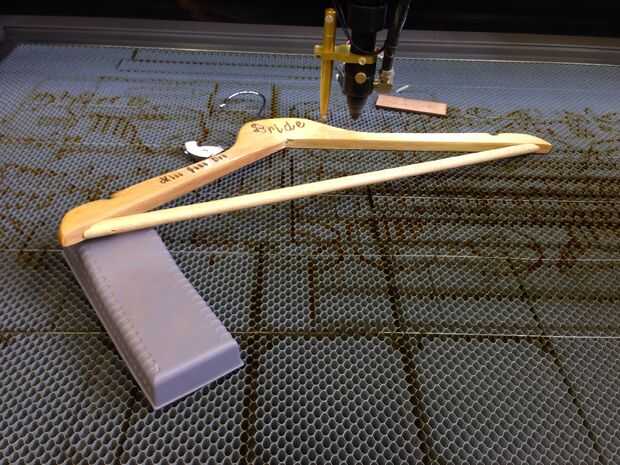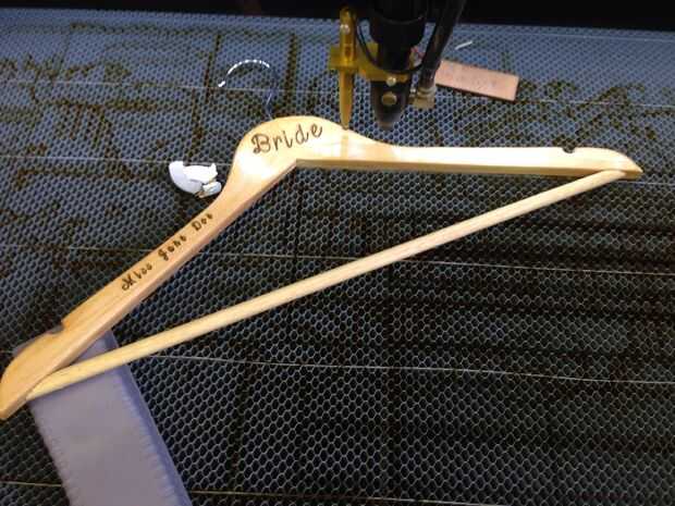 La redacción en la parte superior es fácil de colocar por colocar el punto de origen del laser en el centro de la palabra y la guarnición del láser con el centro de la percha. Esto asegura que la palabra se centra muy bien.
