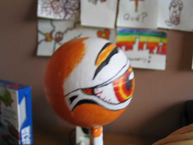 Sólo una nota... cuando pintar la parte inferior de la bola tenga cuidado la bola no pop off y dejar un rastro poco agradable de pintura en la alfombra al lanzar lejos!! *****