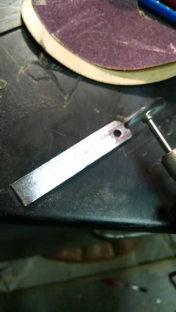 Mientras tanto corté un pedazo de metal de hoja (1/2 "x 2 1/2) para el clip de bolsillo. La pieza se ha limpiado y pulido utilizando varía granos de lija hasta que se logra el acabado deseado. Luego se redondearon los bordes y shaped(dremel). Luego fue perforado un orificio de compensación que sería claro la "ranura de la llave extraíble". Finalmente fue doblada en la forma adecuada utilizando un par de pinzas.