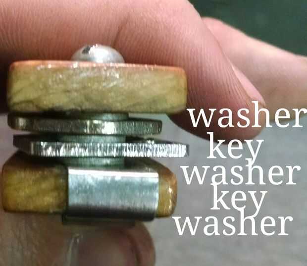 Los tornillos fueron alimentados a través de los agujeros y entonces las llaves comenzaron a ser colocado. Lavadora, luego tecla, luego la arandela, luego clave y así sucesivamente. Entonces todo se intensificó hasta un punto donde las teclas eran firmes pero aún podrían ser sacadas con facilidad. (Los tornillos que he encontrado eran demasiado largo así que terminé pulido el exceso después de que fuera apretado).