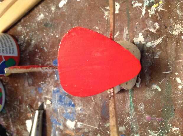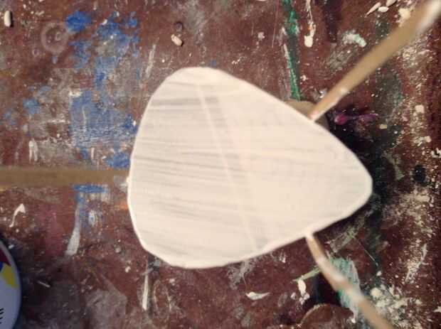 Primer lugar una capa de pintura blanca en el pico del diseño de fondo. Pegan tres palillos en arcilla para sostener los lados de la hoja, así que puedo pintar dos caras de la selección de la guitarra a la vez. Añadir tantas capas como sea necesario. Luego pintar sobre la capa base. Esto es donde usted hacer elegir su propia. Para esto, presentaré una selección de Mario para que mi capa base es de color rojo. Si usted necesita algunas ideas para elegir puse algunos al final de este instructivo. A continuación comienzan a añadir capas de detalle poner en las capas más bajas, dejarlo secar y luego pintura encima. Si están haciendo lugar de salpicaduras de pintura en la punta de su pincel y usar su dedo para empujar las cerdas hacia arriba permitiendo que cada cerda para la película hacia abajo individualmente al mover el dedo para arriba. Finalmente añadir una capa de brillo a su selección cuando todo se haya secado. Continuar hacerlo hasta que la hoja está protegida. El lustre más capas mejor!