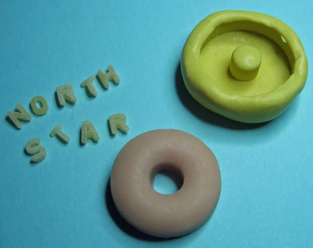 3. rodar en una bola y pat plano y liso. Pulsa sobre el lado liso del caramelo. Alise los bordes cuidadosamente y hacer incluso las paredes laterales. Presionar la masilla en el orificio central de la salvación. De la parte trasera, hacer una muesca de cono pequeño con una punta de lápiz o bolígrafo. Voltee y presione suavemente el molde sobre una superficie plana para formar a nivel del fondo.