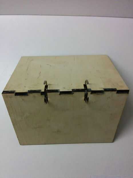 Con las dos juntas le Laser corte encolarlos en los bordes de jigsaw. tienes que insertar los anillos antes de esto y dejar abierta porque quiere asegurarse de que se abra y ajuste cuando quieras usarlo. También puede tener un ángulo menor de 90 grados así que limar los bordes y luego pegar. Para detener los anillos de confundir unos pegado en su lugar también en la parte inferior.