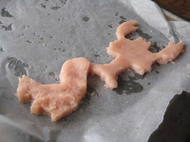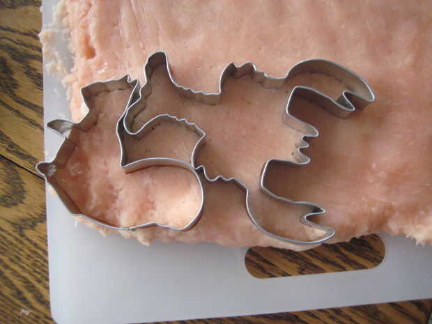 2. Presione el cortador de galletas en uno de los rincones del pollo.