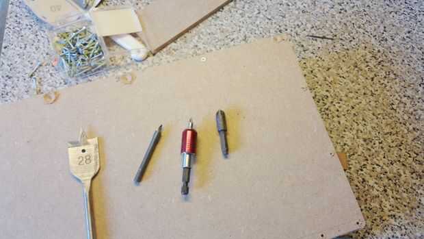 primero perforar pequeños agujeros en el vidrio y la madera, luego utiliza una broca especial para hacer el pozo más profundo por lo que la cabeza del tornillo se va a hundir en.