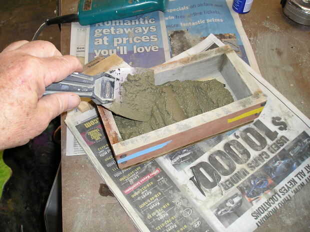 Fuentes:Paso del moldeDesmoldante o aceite vegetal ligero y pincelTablas de Base de madera contrachapadaMáscara de partículas + guantes de gomaCHENG, al aire libre adición de Pro-fórmulaSakrete 5000 Plus mezcla de hormigónCarretilla de rueda o cuboMe