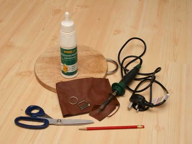 hice un soporte elegante de cuero para mi esposo de roto llavero. Esto se ha mantenido muy bien para más de un año. Se necesita un trozo de cuero, un lápiz, tijeras, 2 agujas resistentes, cinta adhesiva, papel, cinta de embalaje transparente, ojales