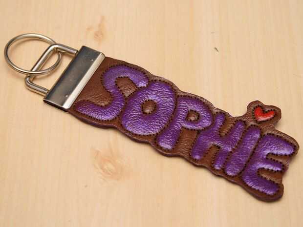 Ahora tienes un llavero de cuero acabado personalizado y relieve. ¡ Disfrute!