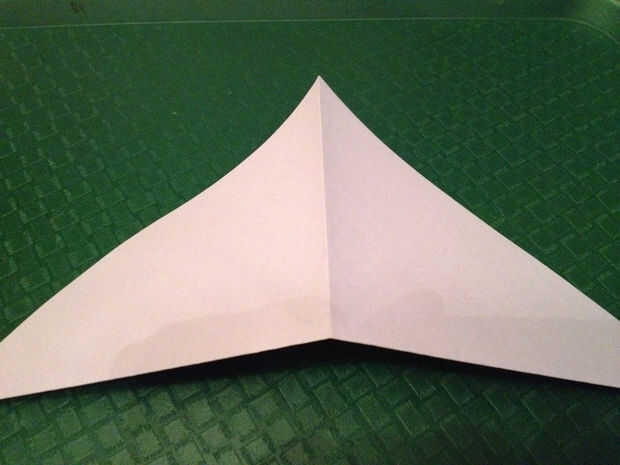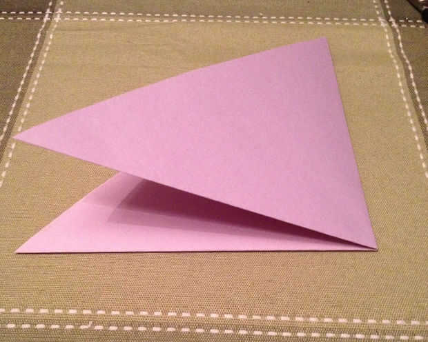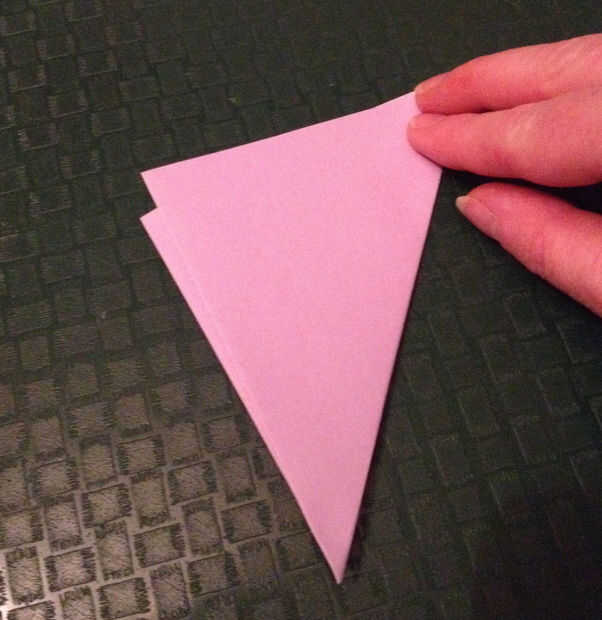 Doblar el triángulo por la mitad para formar un pliegue en el centro, luego despliegue