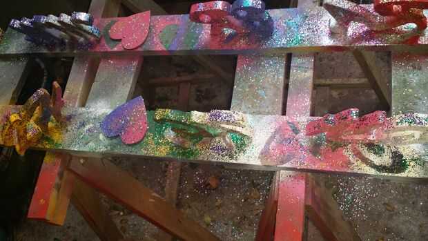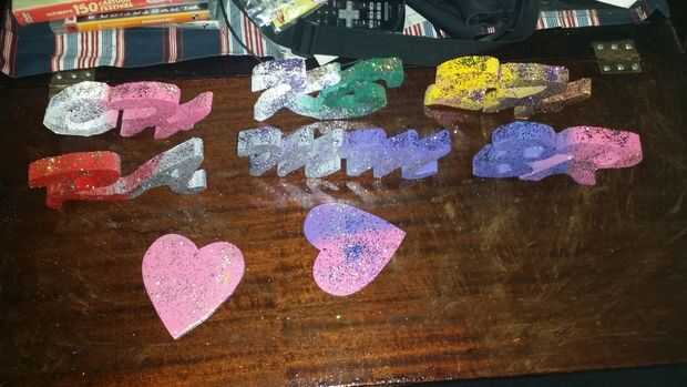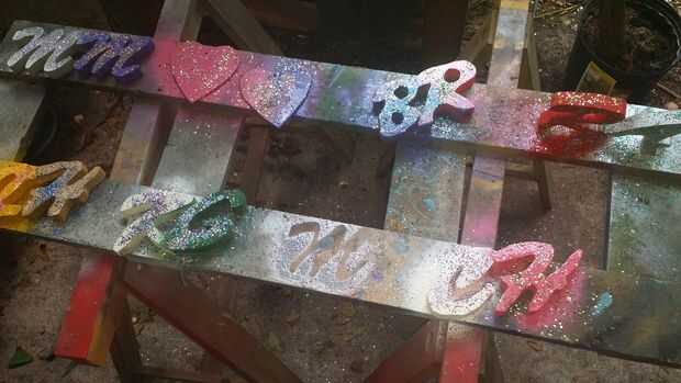 Una vez haya lijado y quitado las asperezas, es hora de pintar. Puede rociar o mano de pintura en colores. Usted también necesitará una lata de pintura polivinílicos claros para añadir brillo y fijar puntos. Mientras la pintura está todavía húmeda, espolvorear sobre los brillos y dejar secar. Sólo se puede hacer una superficie en un tiempo para evitar que las letras se peguen o errores. Una vez de un lado es seco cambiar a otro lado y repita. Una vez que haya completado todos los lados, puede utilizar el spray transparente y zonas húmedas donde desea añadir más brillo. Una vez finalizado con el espumoso, agregar una capa final de spray transparente para añadir un brillo y asegurar cualquier chispa suelta.