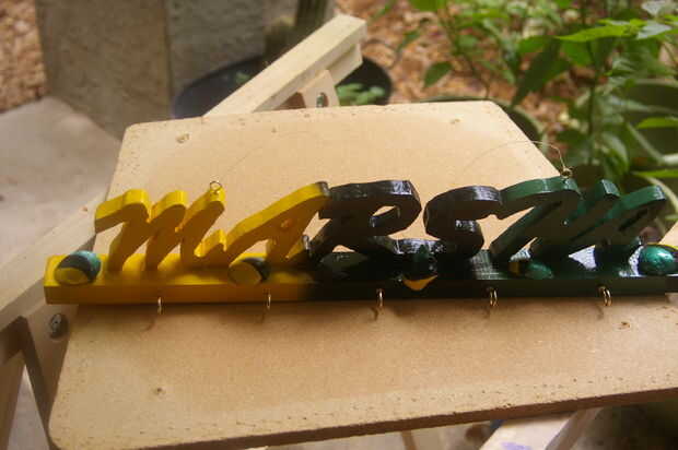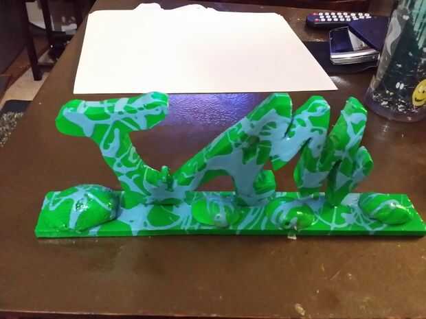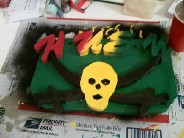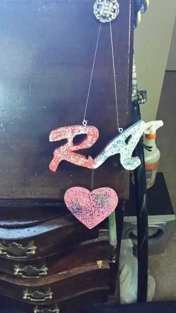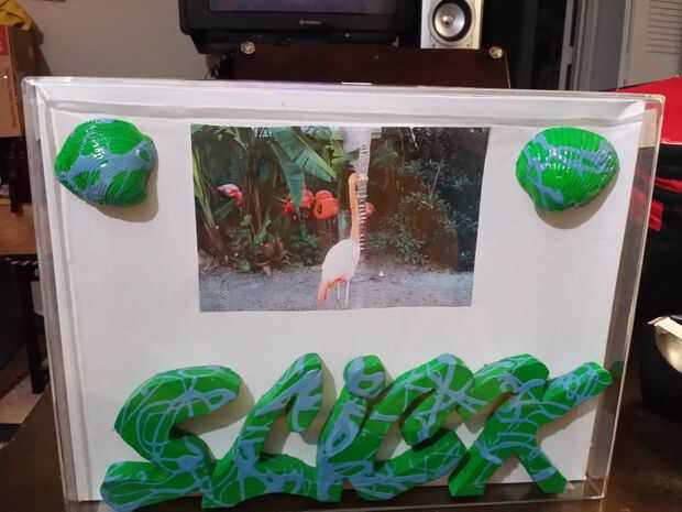 He creado las placas delanteras, con pirata y símbolos de Yankee, puesto que no utiliza las placas en la Florida. También he adjuntado los nombres para marcos de cuadros. He recogido un montón de conchas marinas en Florida, por lo que he pintado y añadido algunos de estos a los nombres.