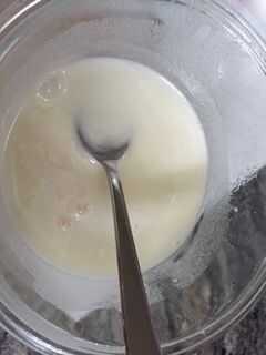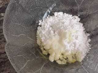 2. para el glaseado blanco restante agregue un 1/4 de cucharadita de agua para que sea un poco líquida. Relleno en la tubería de 2 bolsa... esto que usamos para rellenar.
