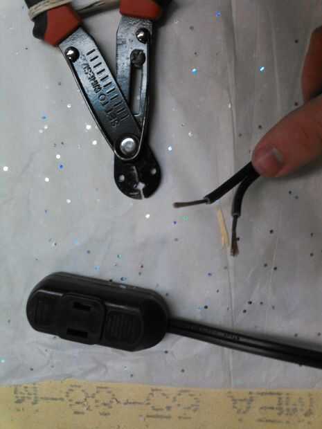 Hacer estos pasos con el cable desenchufado. Usando cortadores de alambre, cortados el cable de extensión al tamaño corto mío derecho debajo de la corriente femenina parte mostrado anteriormente. Tira unos 3/4" en ambos cables. Enrolle los cables alrededor de los terminales de conexión de la lámpara hacia la derecha y apriete los tornillos de abajo para establecer una conexión firme. Para probar que usted hizo esto correctamente, instale el foco y enchufe el cable. Si la luz no prende en 10 segundos, desenchufe y cambiar los cables terminales de alrededor.