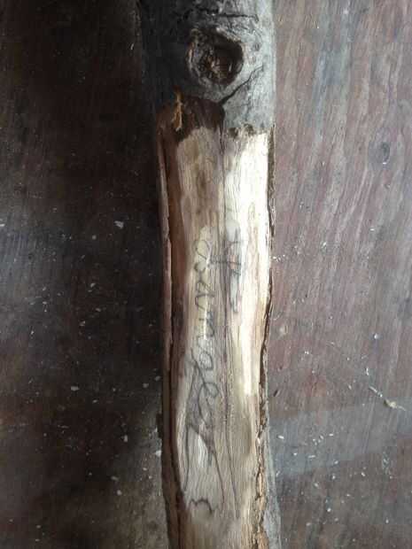 La parte más importante de su personal de palo de caminar es que es tuyo! Esta es la parte del proyecto donde realmente puede convertir un pedazo ordinario de madera en algo vale la pena mantener todo. Para comenzar, use la navaja Xacto para recortar una sección rectangular de corteza de la mitad de la palanca (debe despegar muy fácilmente después de cortar un lado). Utilice el disco de lija de la Dremel para aplanar hacia fuera de la madera en esta sección (recomiendo utiliza un para estos pasos siguientes si tiene uno). Utilizando un lápiz, bosquejo hacia fuera lo que quieres grabar. Ya no soy el más artístico decidí simplemente ponerle un nombre al stick. Si aunque es artístico, no dude de enloquecer y esbozar en algunos patrones o imágenes elaboradas!