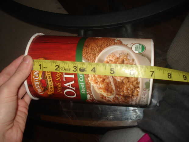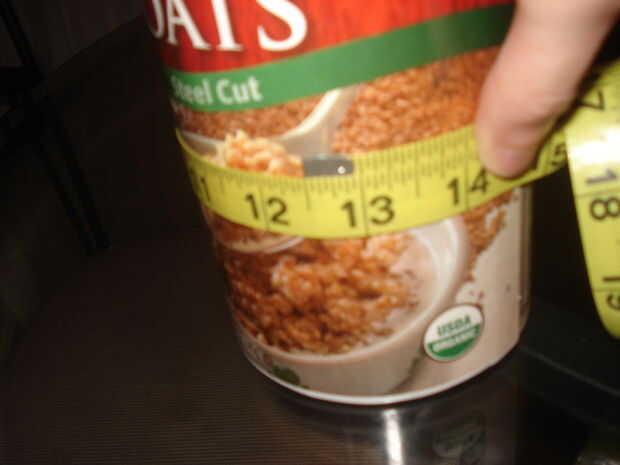 Después asegurándose de que todos los residuos de avena ha sido eliminado, medir la circunferencia y la altura del contenedor (si su envase tiene un labio en la parte superior, simplemente ignorarlo y medir alrededor del cuerpo principal).