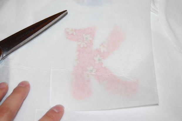 Corte un pedazo del estabilizador de tela más grande que el tamaño de la letra y colocarlo en el interior de la camisa. En la foto a continuación, se muestra en la parte exterior de la camisa, pero que es para fines de tamaño. Seguir adelante y deslícelo dentro.