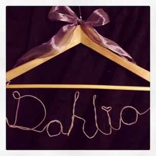 Doble la cuerda por cable para hacer el nombre y enrollar los extremos alrededor de la parte de "pantalones" de los suspensión y pegamento caliente los extremos a la madera.