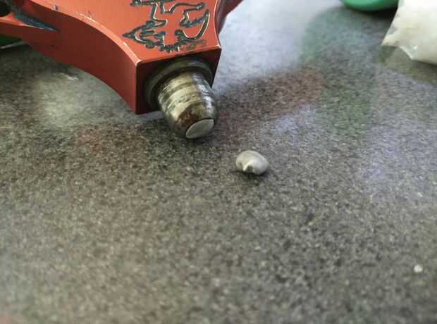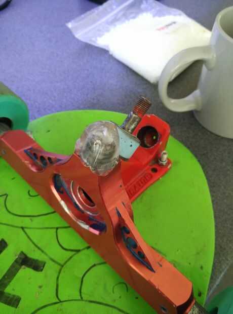 Mi suspensión tenía un orificio de llave Allen. La llené con tac azul para dejar un liso redondo dentro de la nueva Copa de pivote.
