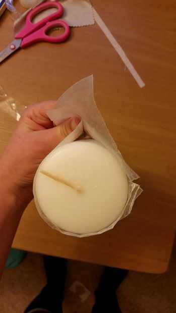 Ahora usted pondrá su pedazo de papel con tu diseño impreso directamente en la vela donde quieres hacerlo permanentemente. Luego vas a poner un trozo de papel de cera sobre el diseño sujetándolo firmemente sin arrugas y el diseño permanece en su lugar.