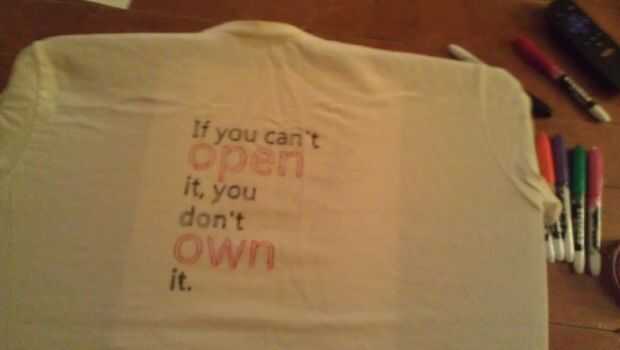 Tómese su tiempo y cuidadosamente traza un esbozo de su diseño sobre la camiseta. Trato de permanecer dentro de la línea, y a hurtadillas en el borde de cada forma con la punta del marcador. Esto permite que mis manos inestables hacen un trabajo decente de la creación de un buen contorno. Es muy fácil, sólo asegúrese de comprobar que su camiseta no ha cambiado de puesto como que está trabajando.