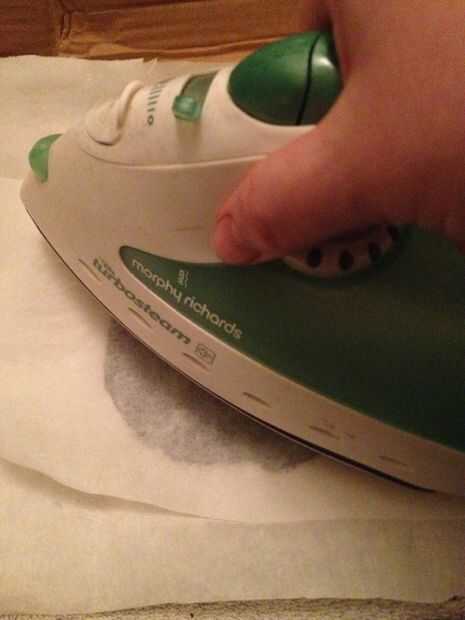 cubrir la parte posterior de la pieza con dobladillo de hierro-en y luego otra capa de papel.