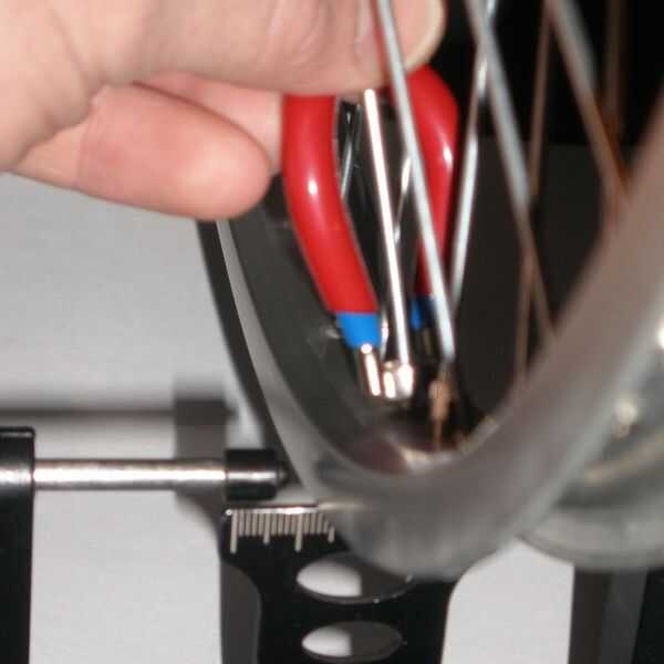 Ahora necesita fijar los radios en el lado donde la llanta está demasiado lejos de su marcador.