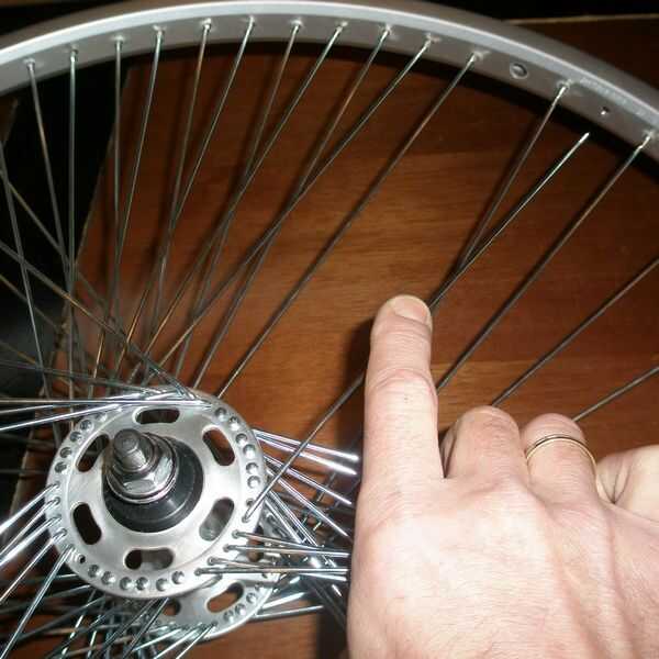Gire la rueda de atrás suavemente sosteniendo los rayos sueltos y los ponen en el centro.