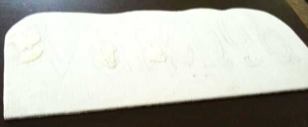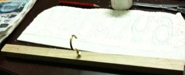 Trazar el nombre usando un carbón para transferir las cartas. recuerden dejar 1" en la parte inferior de la Lama (no lugar cualquier conchas en esta zona)