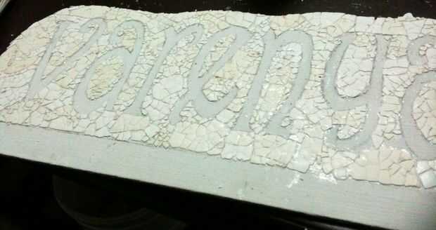 Ahora aplicar el pegamento y colocar sus cáscaras en él y mueva lentamente las cáscaras por lo que habrá un pequeño espacio. Hacer esto para el área entero negativo de las letras.