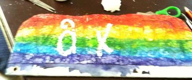 Una vez terminado el área entero negativo... pintura con tinta de colores o alcohol de agua... me decidí a mina en colores del arco iris.