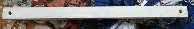 Ahora mida el ancho de la pieza de madera y cortar el listón a la longitud. Pintarlo y clávelo en la parte inferior del mosaico (recuerda que dije que deje una separación de 1" en el paso 2).