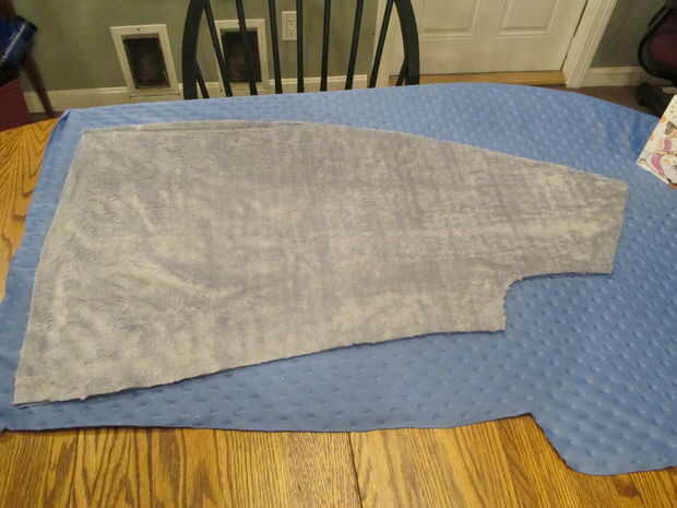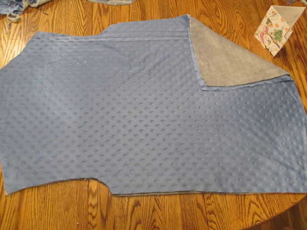 Pongo la tela azul sobre los lados gris de la derecha uno, juntos, luego coloque el manto de eso.