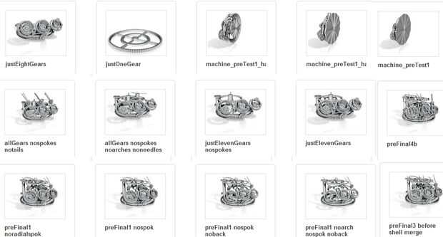 La mejor manera de solucionar esto es quitar la mitad del modelo y vuelva a intentarlo. Ingenieros de software llaman una búsqueda binaria. Me la pelaron a la mitad el modelo, y luego la mitad otra vez, hasta que finalmente hacia abajo a un solo engranaje. Que de cuando me di cuenta había una imperfección microscópica en la estructura de los engranajes (un vértice indexación error, causando la superposición del patrón de iris).
