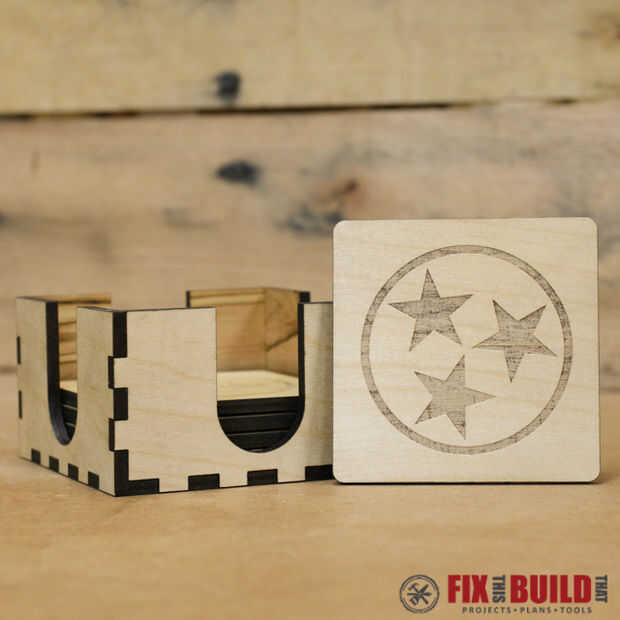 Hice un juego de posavasos de madera personalizados con un soporte práctico de Costa de un pequeño trozo de 1/4" madera contrachapada utilizando una máquina de láser CNC. Puede personalizar el diseño a cualquier cosa que desee y estos hacen regalos perfectos.