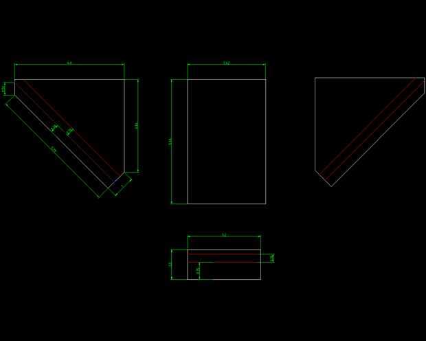 -Cortar algunas piezas en 45 grados para los lados. El lado del corte a 45 grados tiene que ser lo suficientemente largos para dar cabida a la parte posterior e inferior.
