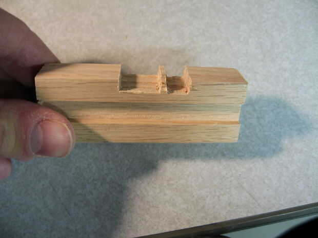 -Uso una cola de Milano Sierra para cortar a través el grano en la parte más ancha de la línea de lápiz. -Use un cincel para limpiar la madera entre los cortes. -Tomar un poco de cada paso y prueba de ajuste el reproductor de mp3 y conectores cada vez
