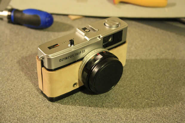 Una vez que el pegamento pegajoso, coloque con cuidado el cuero en la cámara, a veces obtener una pequeña cantidad de movimiento de lado a lado, pero no mucho. Presione firmemente sobre la piel para asegurar una buena adherencia.