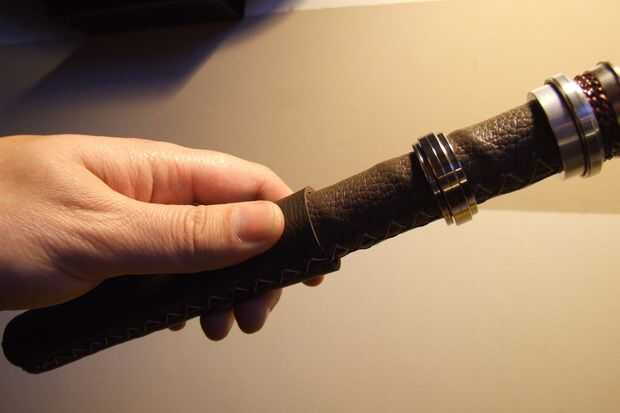 Aquí es un ejemplo de alambre de cobre de uso de la decoración. Si te lo haces, recuerda que influirán en el diámetro de una empuñadura que necesita ser cubierto por el cuero.