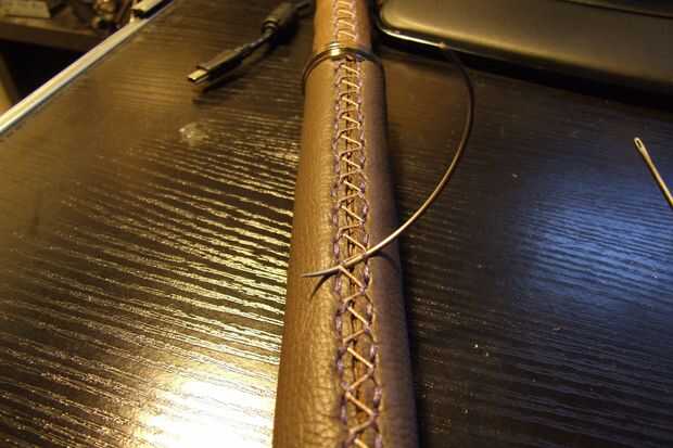 A ambos extremos de la cobertura de cuero utilicé un hilo redondo beige y simplemente Únete esos 2 puntos.