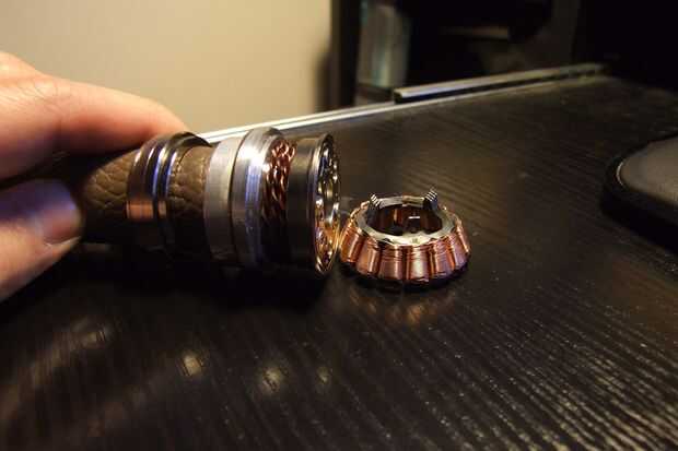 También tornillo de un cable de cobre (doblar un alambre por la mitad, luego poner en el taladro y el otro extremo en el tornillo y enroscar) para tener algún apuesto alambre trenzado actúa como una bobina. Y pegué en el costado de un rotor.