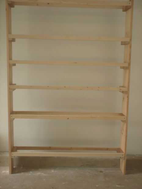 Número de estante 1, 2 y 6, atornillan los listones a los soportes de extremo. Para los estantes restantes, sujeta por los lados. Hasta ahora todos los tornillos utilizados son 2" de largo. ¡ Seguí revisando la escuadra del marco en varias etapas antes que apretar nada. Ahora el marco de la plataforma podría valerse por sí mismo. La profundidad que sólo 7,25" en comparación con la altura de 72", el marco era fácil de volcarse.