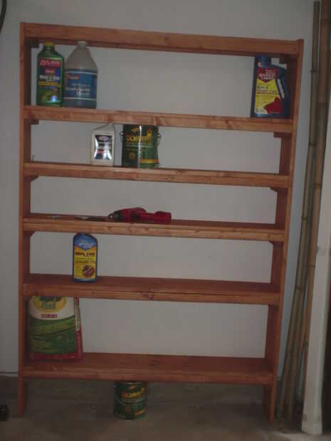 Después de que terminó la Asamblea, apliqué una capa de una mancha semi transparente base aceite (sobra de mi baraja). Después de esto fue seco, encuentran dos postes donde quería instalar la estantería, coloca la unidad en torno de los postes de madera y había anclado a la pared a través de la tira de soporte de borde trasero del estante superior (un tornillo en cada viga). He probado el ajuste de espaciamientos de estante para los elementos previstos y estaba feliz de ver todo como previsto.