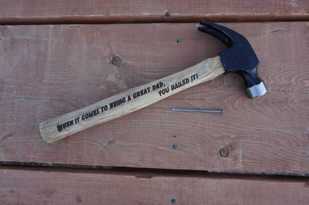 El martillo personalizado está listo para ser envuelto y a papá!