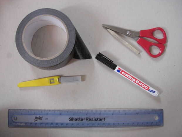 Fuerte par de tijeras y un cuchillo afilado como una cuchilla Stanley o cuchillo es útil.